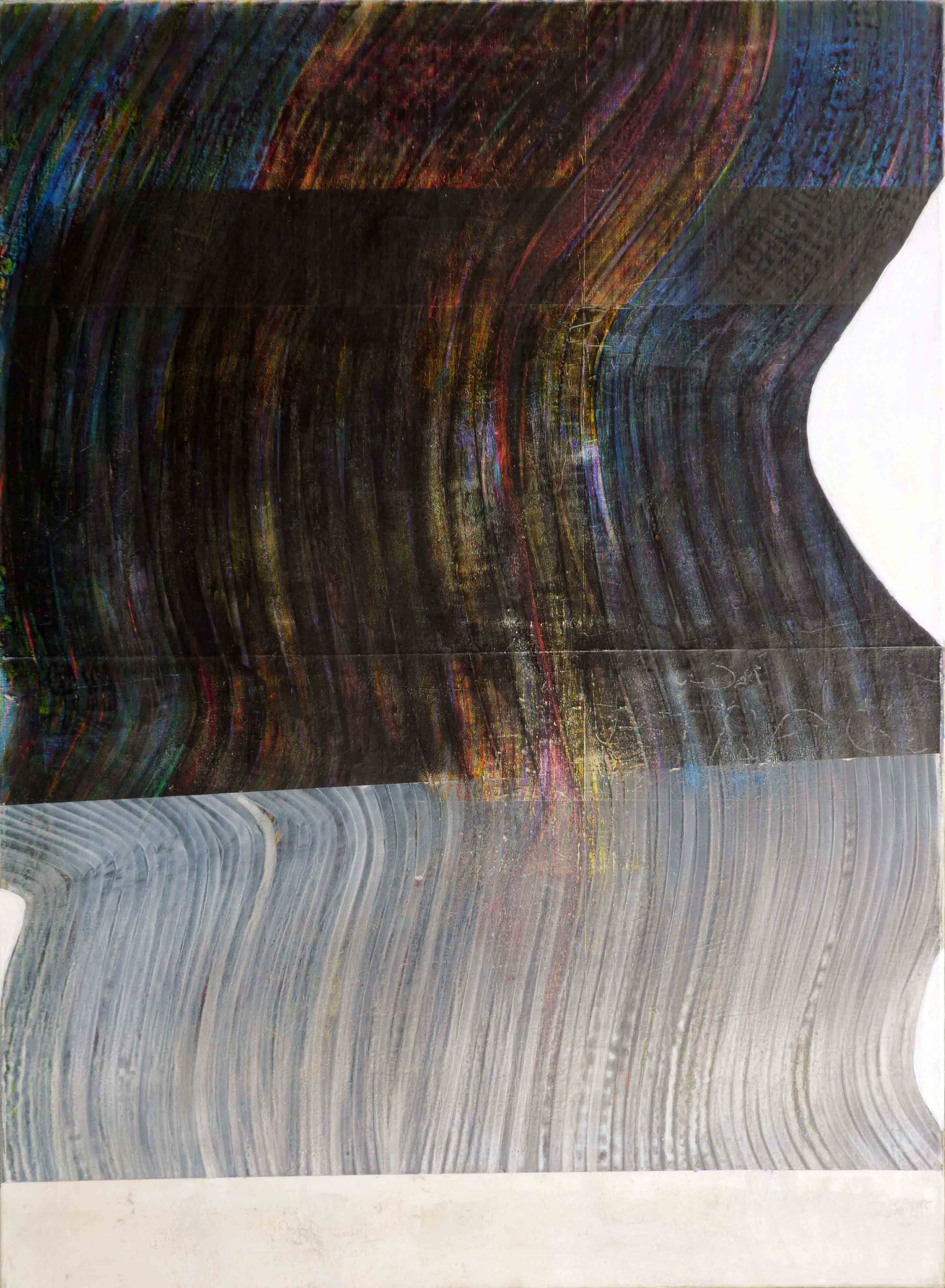 "Spuren", Vertikale Geschichten" II , III, 2015, je 110 x 80 cm, Tuschen und Acryl auf Bütten, auf Leinwand kaschiert und dort weiterbearbeitet